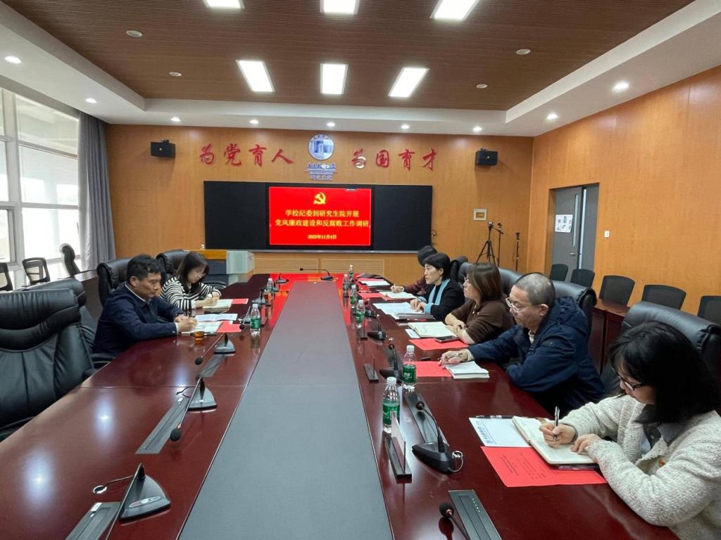 双方围绕研究生院党风廉政建设工作的重点难点展开深入交流。研究生院结合工作实际,就研究生教育管理中潜在的廉洁风险点、监督机制优化方向等问题提出意见建议;学校纪委调研队伍针对具体工作场景,从创新监督方式、拧紧责任链条、细化工作举措等角度给予专业指导,为研究生院进一步完善廉政工作体系提供了切实参考。