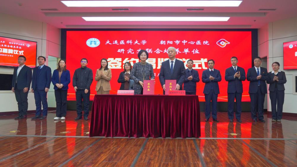 1月16日上午,大连医科大学与朝阳市中心医院研究生联合培养单位签约揭牌仪式在朝阳市中心医院报告厅隆重举行。学校党委副书记、校长刘莹,朝阳市副市长刘力东,市卫生健康委员会党组书记徐万江、朝阳市中心医院党委书记国士刚出席仪式,朝阳市中心医院党委副书记、院长李连贺主持仪式。